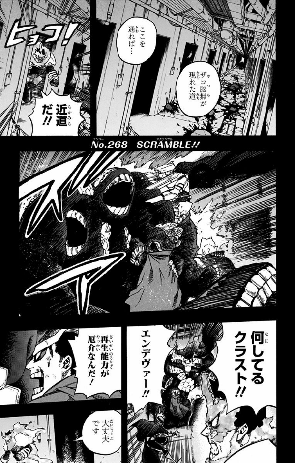 声の調子も最高潮! YEAHHHHHHH! “敵”も脳無もウジャウジャで、盛り上がってんな! 俺たちのような悪夢を繰り返さない為にも、ヤツらは必ずここで絶つ! だからあいつは…死柄木だけは絶対に起こすわけにはいかねぇ! “Plus Ultra”!!