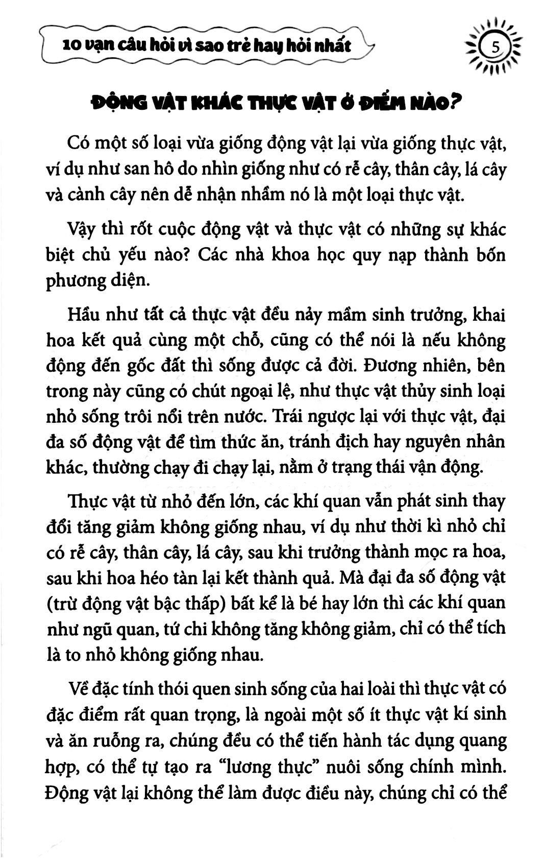 Những câu trả lời được trình bày rất dễ hiểu, đơn giản những giàu tính thông tin khoa học và thực tiễn, đặc biệt là rất phù hợp với các bạn nhỏ, giúp các em phát huy trí tò mò, mở rộng hiểu biết về thế giới xung quanh.