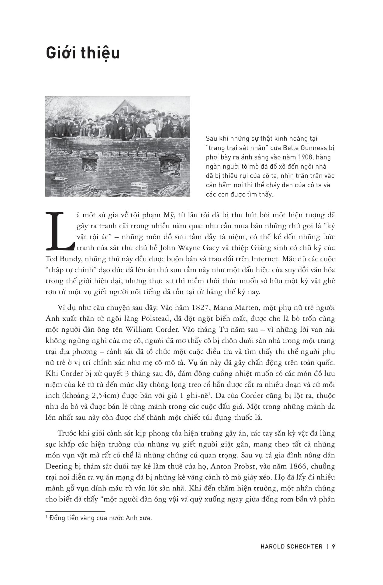 Những chiếc răng giả của một nữ sát nhân hàng loạt từ năm 1908, lời thú tội nguyên văn của sát nhân Thược Dược Đen, mật thư mới được giải mã của sát nhân Zodiac, khẩu s.úng được dùng trong vụ sát hại gia đình Clutter - đây không chỉ đơn giản là những hiện vật từng thuộc về những kẻ sát nhân khét tiếng. Chúng là đối tượng đam mê của những người ám ảnh về tội ác có thật trên khắp thế giới. Và lý do không chỉ là vì những cảm giác giật gân hắc ám thoáng qua, mà bởi vì chúng đem đến một góc nhìn thấu suốt về những con người thường được chúng ta gán nhãn “quái vật” chứ vẫn chưa tìm hiểu sâu xa xem họ thực sự đã trở thành quái vật ra sao.