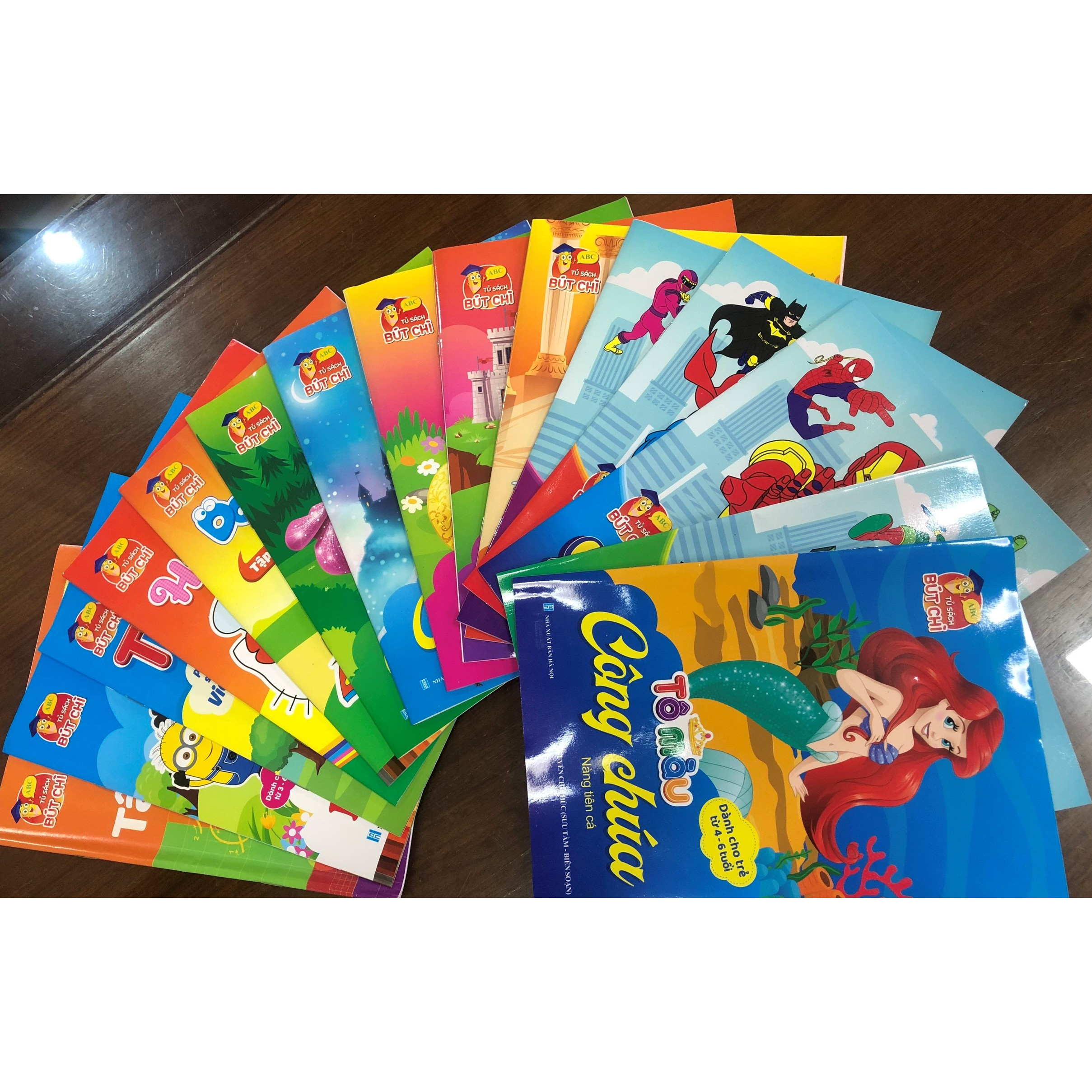 Bộ 15 cuốn tô màu 3 chủ đề: Tô màu công chúa - Tô màu các nhân vật hoạt hình - Tô màu siêu nhân cho các bé thỏa sức sáng tạo, tăng nhận biết về màu sắc, còn giảm ham muốn xem ti vi, điện thoại mà giá lại cực ưu đãi cho phụ huynh