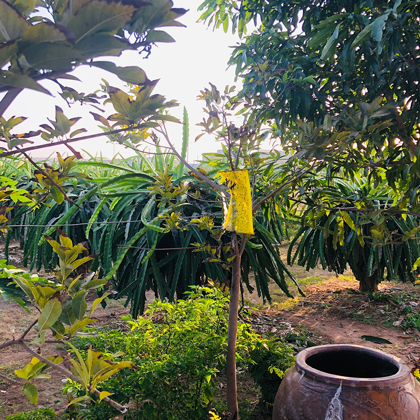 - Dùng “Dẫn dụ” và “Bẫy” các loại côn trùng như ruồi đục trái, ruồi vàng, bọ phấn trắng, bọ trĩ, bọ nhảy, sâu vẽ bùa, bướm trắng, ốc sên … và bị keo dính lại