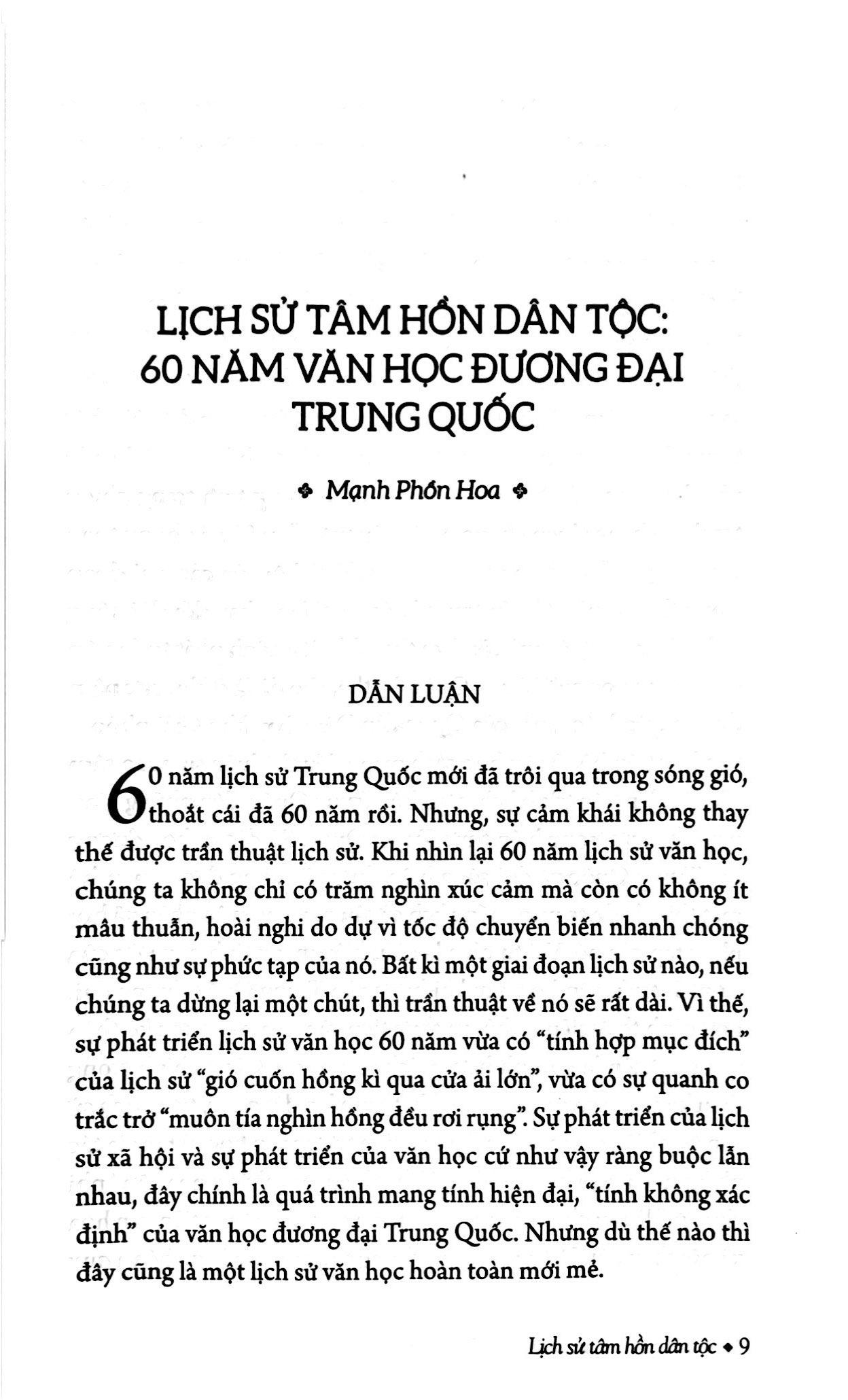 60 năm văn học đương đại Trung Quốc là công trình nghiên cứu văn học công phu của 3 tác giả Trình Quang Vỹ, Mạnh Phồn Hoa, Trần Hiểu Minh, những giáo sư văn học hàng đầu Trung Quốc, về lịch sử phát triển của văn học Trung Quốc suốt 6 thập kỷ kể từ năm 1949. Đây chắc chắn là một tài liệu tham khảo hữu ích cho những ai muốn quan tâm đến dòng chảy văn chương nhiều thác ghềnh và lắm thăng trầm ở quốc gia đông dân nhất thế giới này.