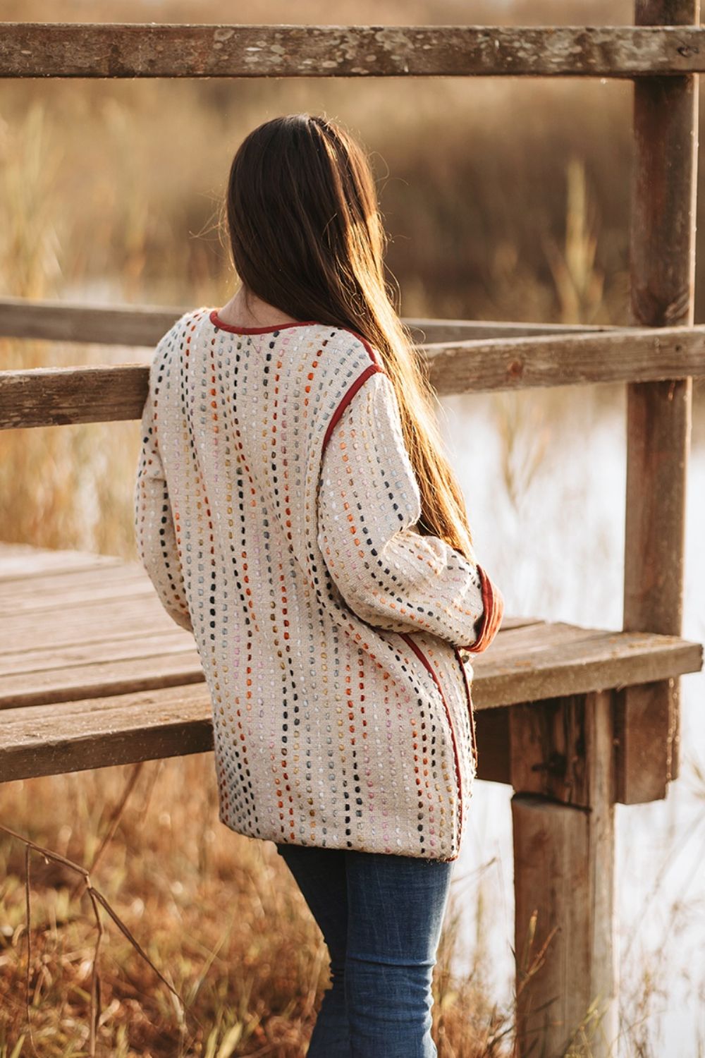 Áo Khoác Boho Kết Kim loại Isla Bonita, chất liệu vải bố cao cấp cá tính, nổi bật phần kim loại đính viền cổ áo, thêu phối trên thân áo. Phom suông. Dài áo 70cm