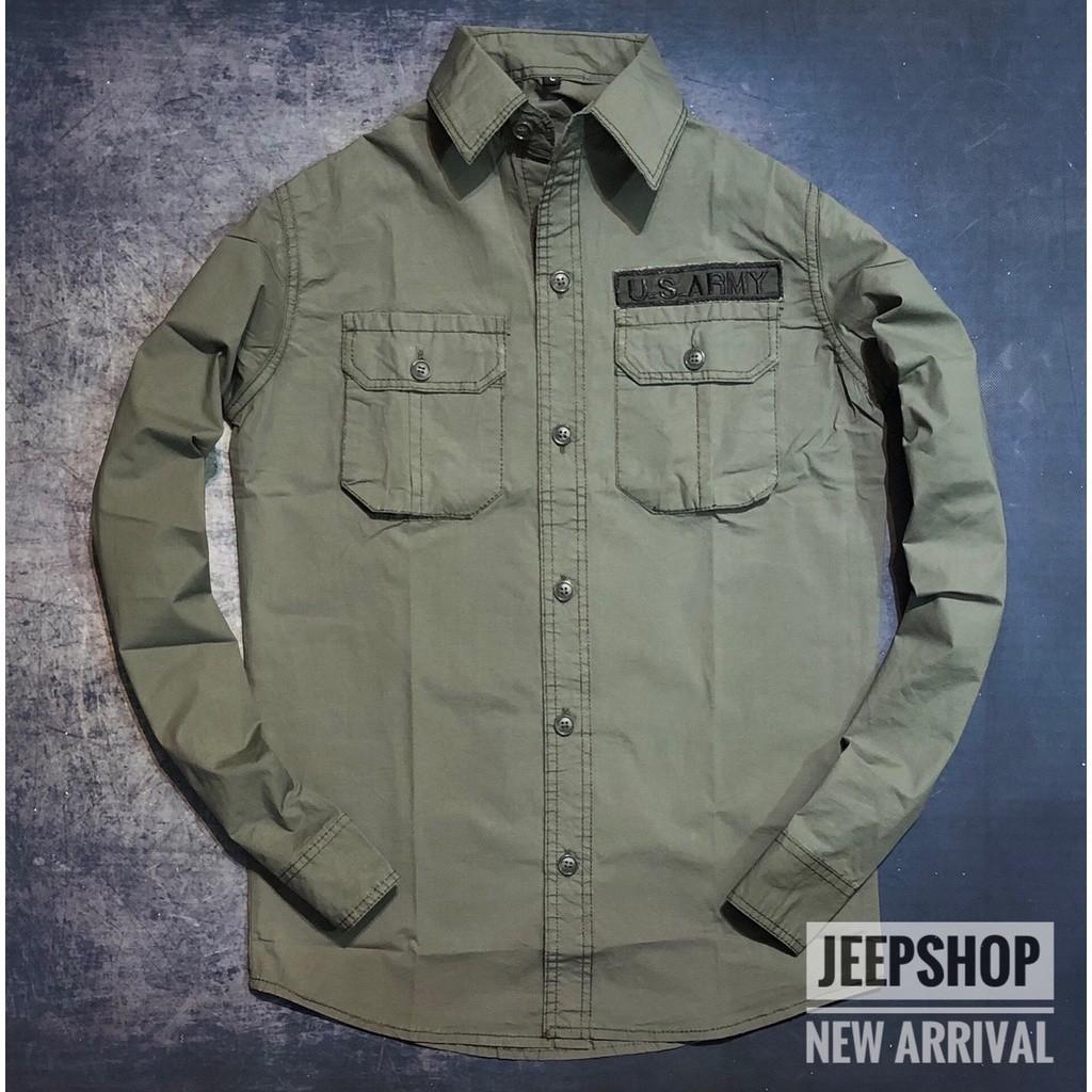 ✨Áo sơ mi dài tay US.Army_kaki_túi hộp