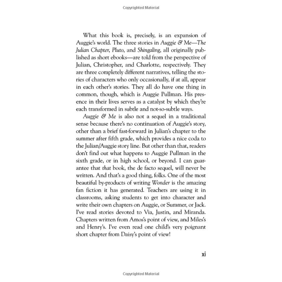 Tác phẩm đặc biệt này dành cho những độc giả mong muốn được đắm chìm nhiều hơn nữa vào thế giới của Auggie.