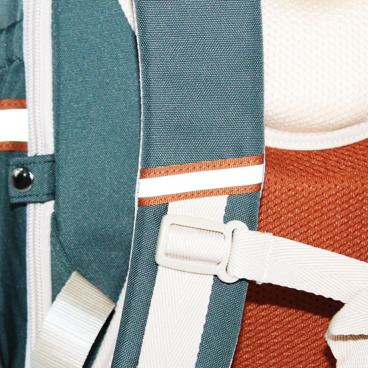 - Mặt sau thiết kế lưới bọc xốp ba chiều, thông gió và tản nhiệt; vật liệu mềm và đàn hồi, có thể giảm bớt tác động của cặp lên cột sống trong quá trình đi bộ.