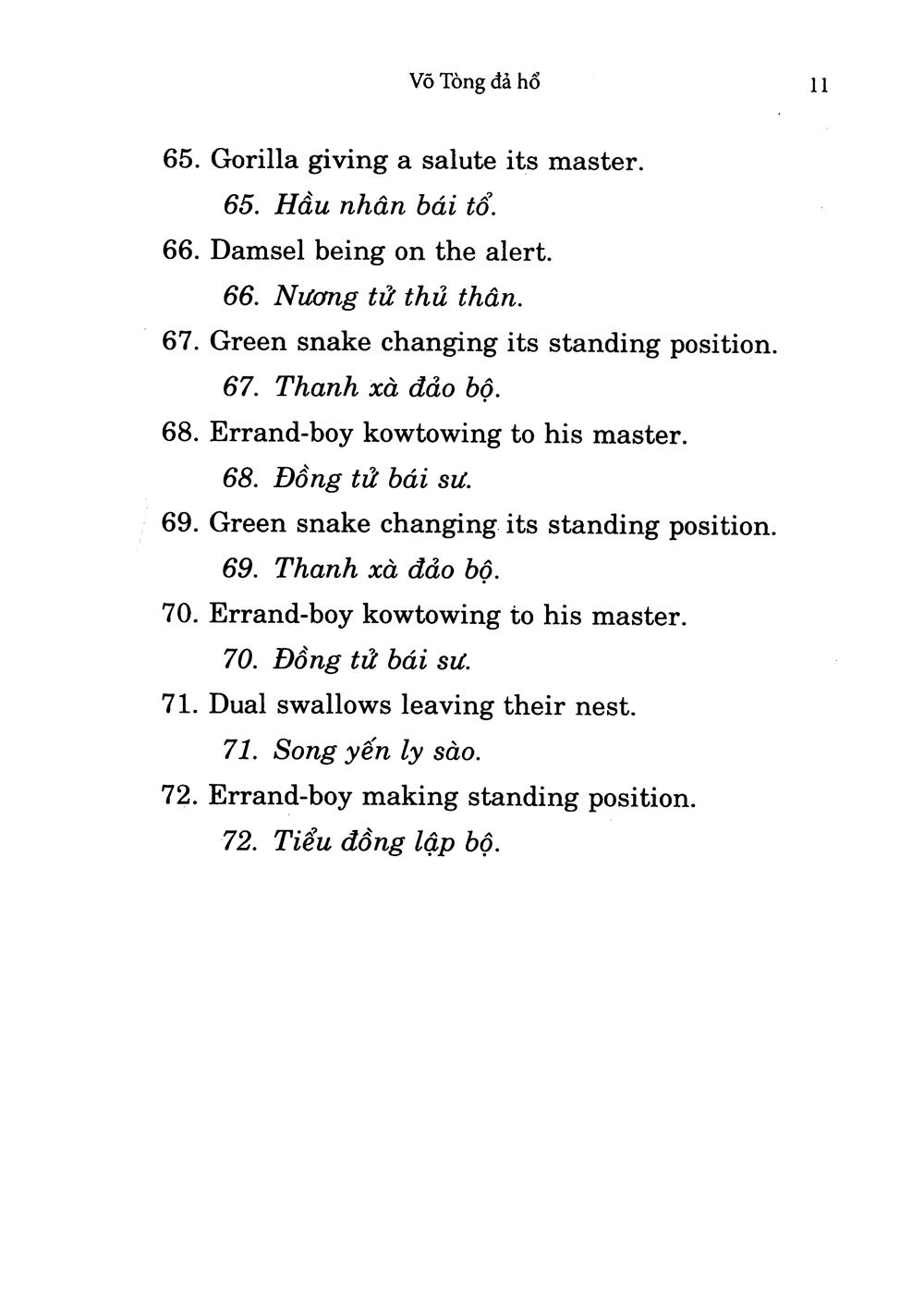 Bài quyền sẽ dạy cho chúng ta cách sử dụng đòn thế Võ Tòng Đả Hổ ở cả hai bên phải và trái một cách thành thạo, và có thể đối phó được với kẻ địch ở bốn phía một cách dễ dàng.