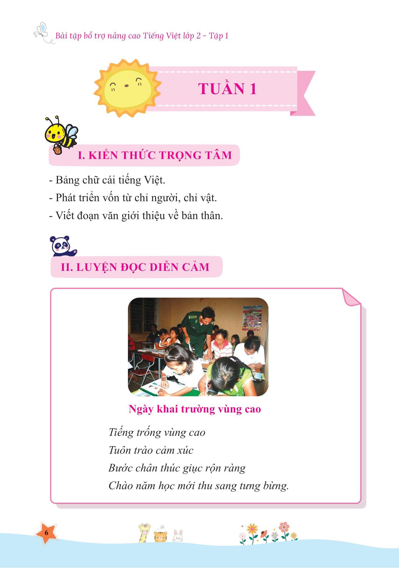 Phần bài tập: Mỗi tuần các em đều được nhấn mạnh vào các kiến thức trọng tâm, luyện đọc diễn cảm, trả lời các câu hỏi đọc hiểu văn bản và luyện viết câu hoặc đoạn văn.