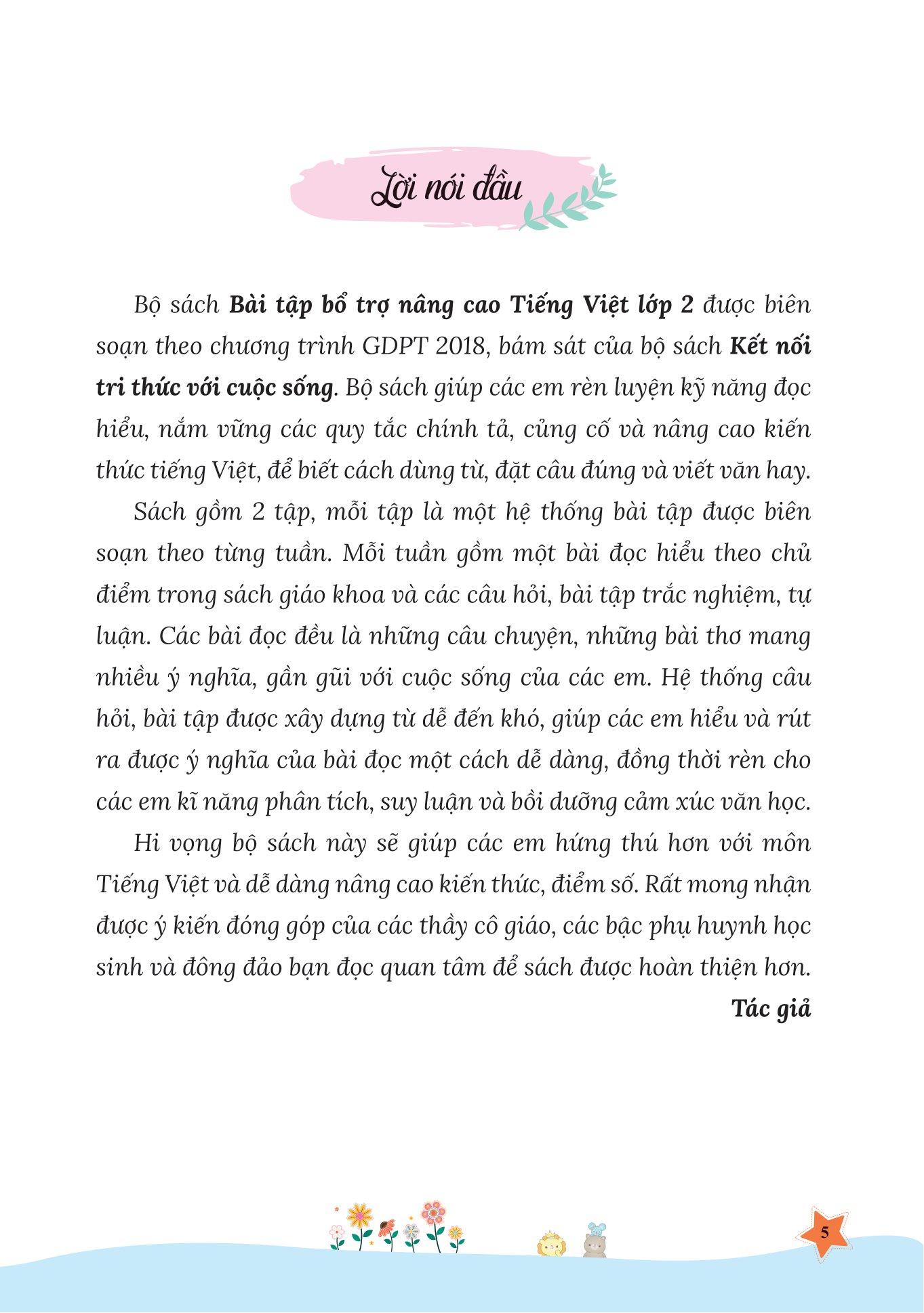 Chúng tôi hy vọng bộ sách sẽ cho các em hứng thú trong quá trình học, đồng thời nâng cao kiến thức và điểm số một Tiếng Việt.