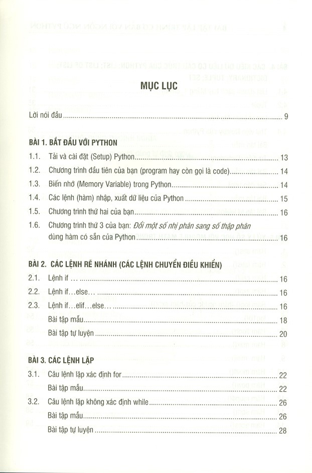 Gồm 15 bài học và 2 dự án thực hành. + Bài 1: Cài đặt môi trường phát triển + Bài 2: Ngôn ngữ lập trình Python + Bài 3: Biến và kiểu dự liệu
