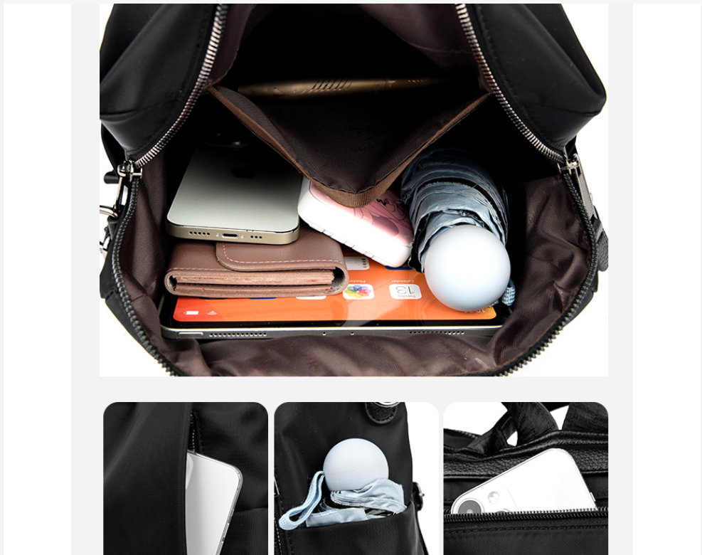 Kích thước túi: Trung bình Công suất: 20-35L Cấu trúc bên trong túi: Túi điện thoại di động, Túi tài liệu Mở nắp: dây kéo Chất liệu: Nylon Đã khóa hay không: Không Che mưa
