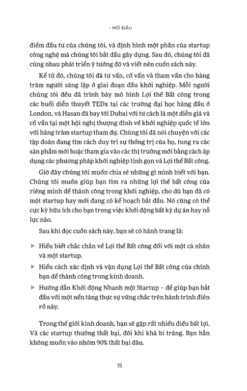 Cuốn sách đột phá này chỉ ra cách xác định Lợi thế Bất công của riêng bạn và vận dụng chúng vào bất kỳ dự án nào. Dựa trên hơn hai thập kỷ kinh nghiệm thực tiễn, bao gồm cả thời gian làm giám đốc tiếp thị đầu tiên cho Just Eat (một công ty khởi nghiệp hiện trị giá hơn 5 tỉ bảng Anh), các tác giả đưa ra một khuôn khổ độc đáo để đánh giá ngoại cảnh, bên cạnh sức mạnh nội tại của bạn.