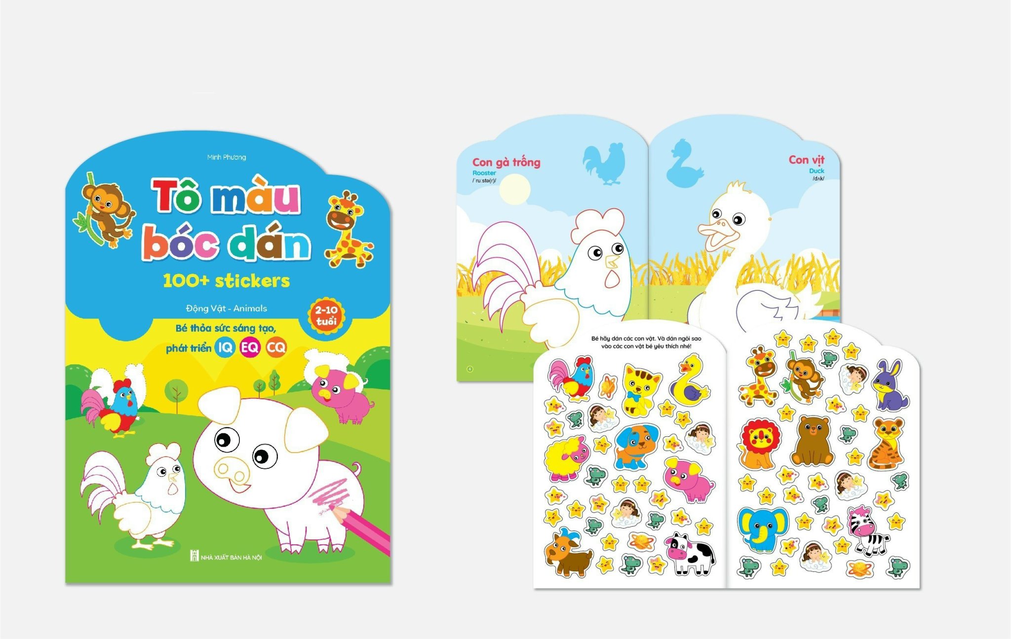 Mỗi quyển gồm 16 trang + 2 tờ hình dán sticker khổ to 19x26.5 cm.