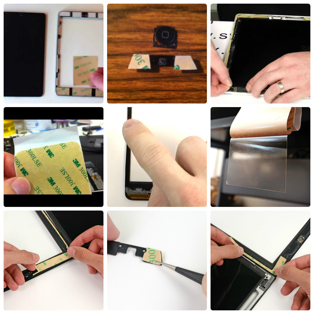 - Place the last L-shaped adhesive strip on the bottom right corner of the front panel.