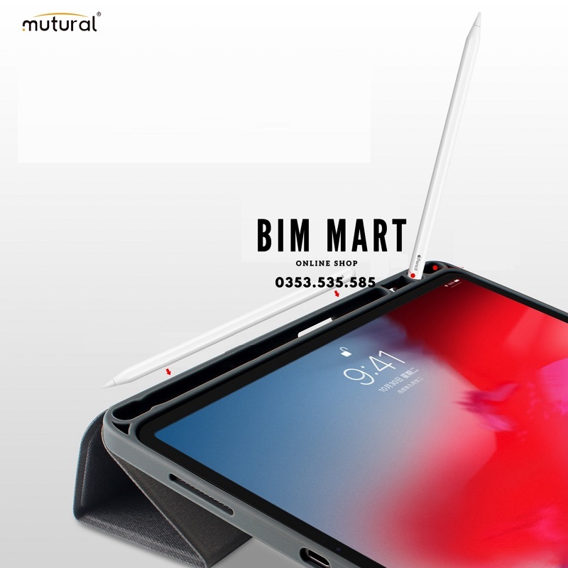 Bao da chính hãng Mutural có ngăn để bút được làm từ chất liệu da tổng hợp, cao cấp, thiết kế kiểu dựng ngang như quyển sổ Bao da có phần lưng bằng silicon dẻo ôm
