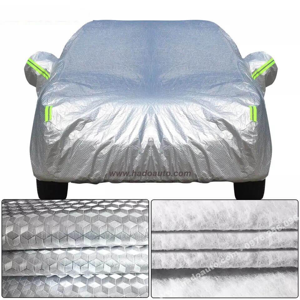 Bạt phủ xe ô tô 7 chỗ 3 lớp tráng nhôm cách nhiệt, chống nóng, chống thấm, chống bụi bẩn - Bạt phủ xe có mặt ngoài là chất liệu vải PEVA tráng nhôm phản