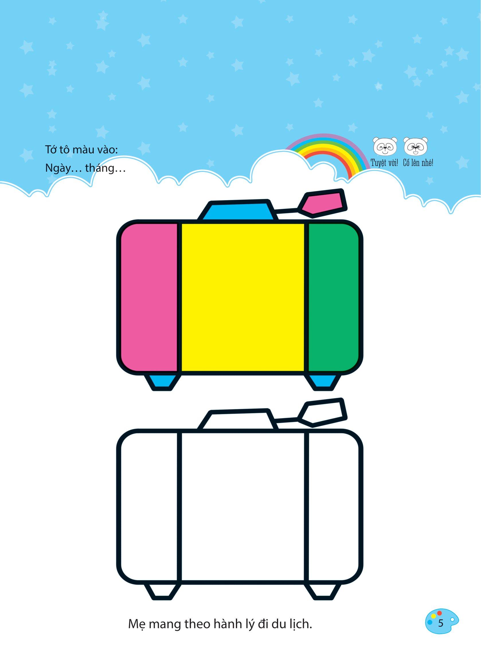 Ngoài việc tô màu theo sự sáng tạo riêng của mỗi bé, sách có gợi ý màu sắc, hình tô mẫu để các bé có thể dễ tưởng tượng và ghi nhớ được hình dạng và màu sắc.