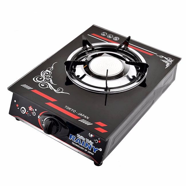 Bếp gas đơn hồng ngoại Rainy mặt kiếng cường lực sử dụng đầu đốt bằng mâm hồng ngoại có độ nóng cao, giảm tối thiểu lượng gas tiêu thụ, tiết kiệm gas hơn các loại bếp thông thường có thể đốt cháy gas 100%.