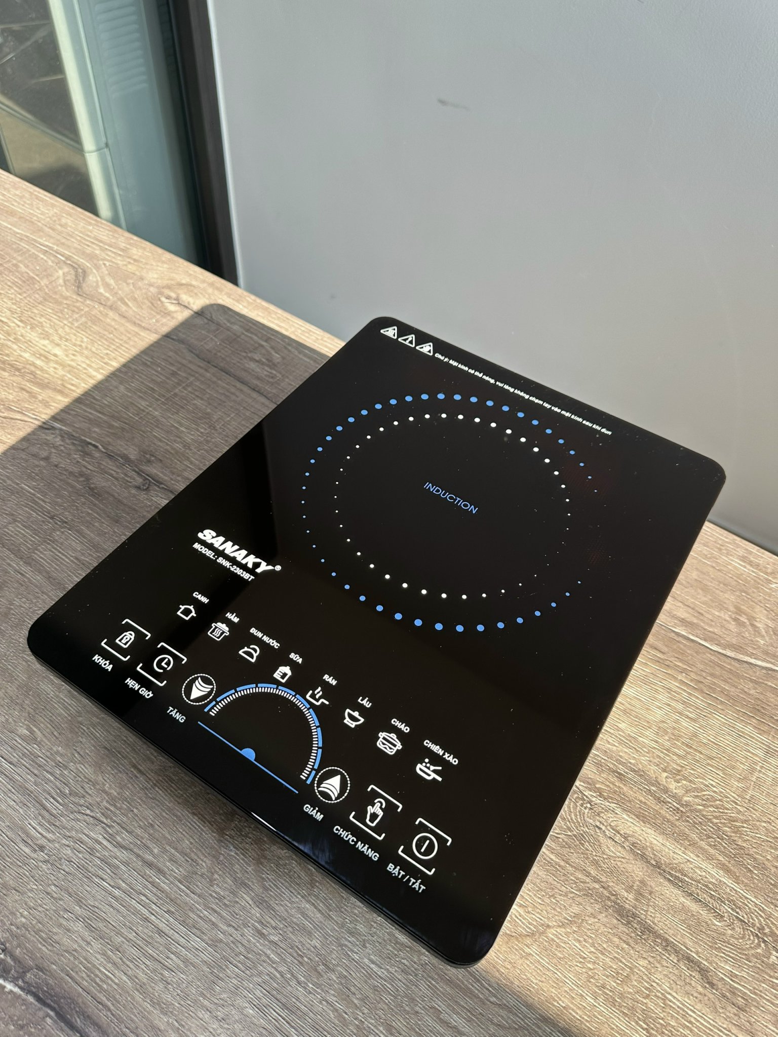 Mặt kính ceramic chịu nhiệt Mâm từ đường kính 22cm Mâm từ tự động nhận biết kích cỡ xoong nồi. Chức năng hẹn giời, chế độ xào rá Điều khiển công suất / nhiệt độ