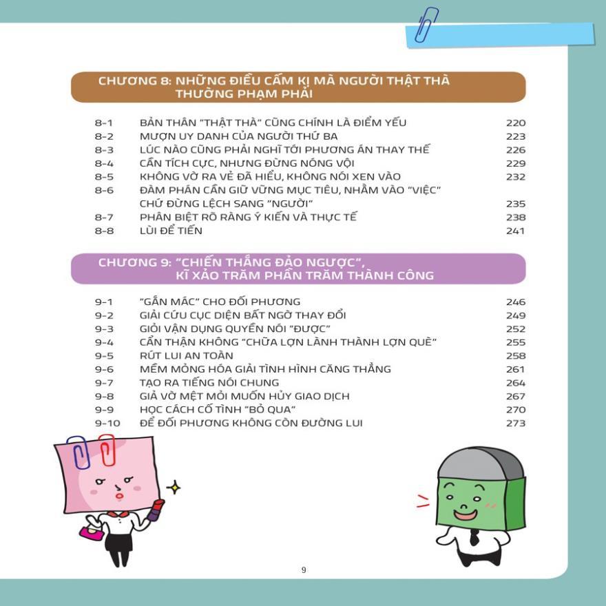 Cuốn sách này dựa trên những ví dụ thực tế trong cuộc sống, kết hợp hình minh họa vui nhộn, sẽ chỉ ra cho bạn biết phải chuẩn bị thế nào trước khi đàm phán để đối thủ đồng thuận với cách của bạn, để bạn giành chiến thắng tối đa trong các cuộc đàm phán.