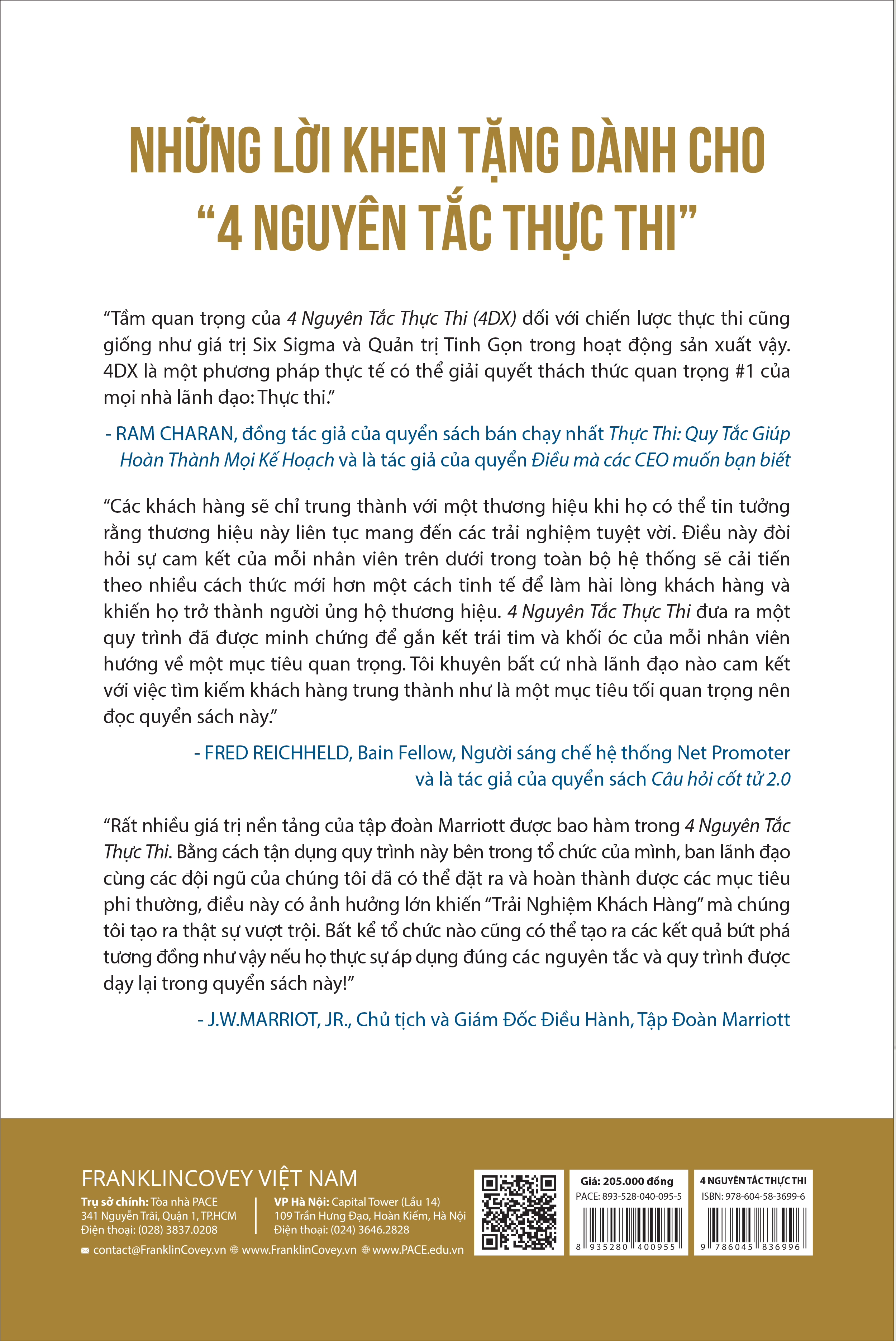 Các nhà lãnh đạo có thể tạo ra các kết quả đột phá, ngay cả khi việc thực thi chiến lược đó đòi hỏi một sự thay đổi hành vi đáng kể trong đội ngũ của họ. 4 Nguyên Tắc Thực Thi không chỉ là lý thuyết. Đây là một bộ các cách làm đã được kiểm chứng và hoàn thiện bởi hàng trăm tổ chức và hàng ngàn đội ngũ trong nhiều năm tháng. Khi một công ty hay một cá nhân tuân thủ các nguyên tắc này, họ đạt được những kết quả vượt trội – bất kể đó là mục tiêu gì. 4 Nguyên Tắc Thực Thi đại diện cho một cách nghĩ và cách làm mới cần có để vươn lên trong môi trường đầy cạnh tranh ngày nay. Nói một cách đơn giản, đây là cuốn sách mà không một nhà lãnh đạo nào có thể bỏ lỡ.