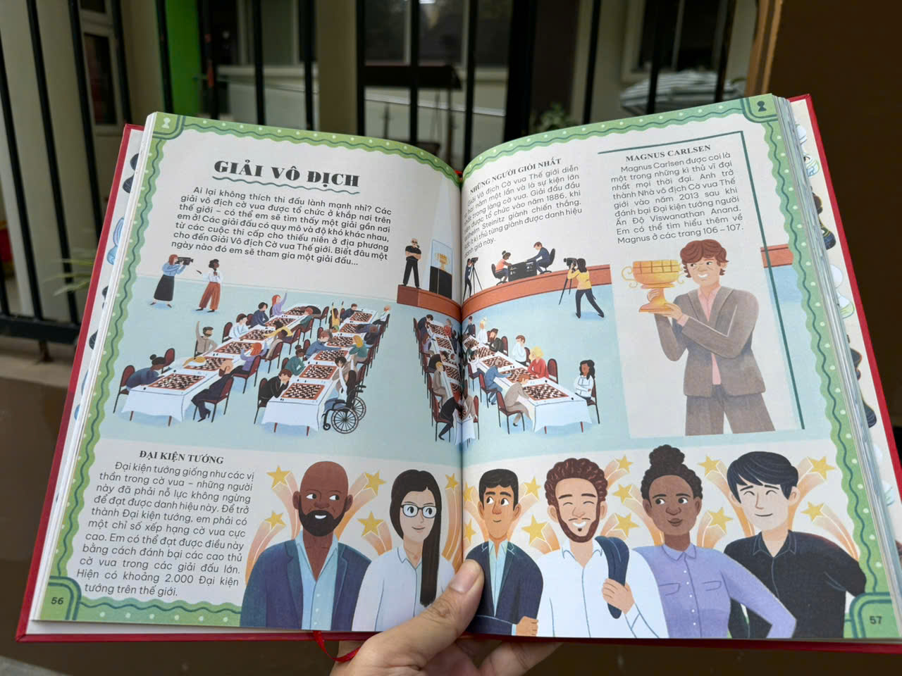Trong cuốn sách này, các em sẽ học về 16 quân cờ và cách sử dụng chúng. Mục tiêu trong cờ vua là chiếu bí đối thủ, tức là dồn quân cờ quan trọng nhất của họ – quân vua – vào thế không thể thoát. Trên hành trình đó, các em sẽ bắt quân của đối thủ và họ cũng sẽ bắt quân các em. Đây là một trò chơi đòi hỏi sự thông minh, khéo léo và cả chút liều lĩnh nữa.