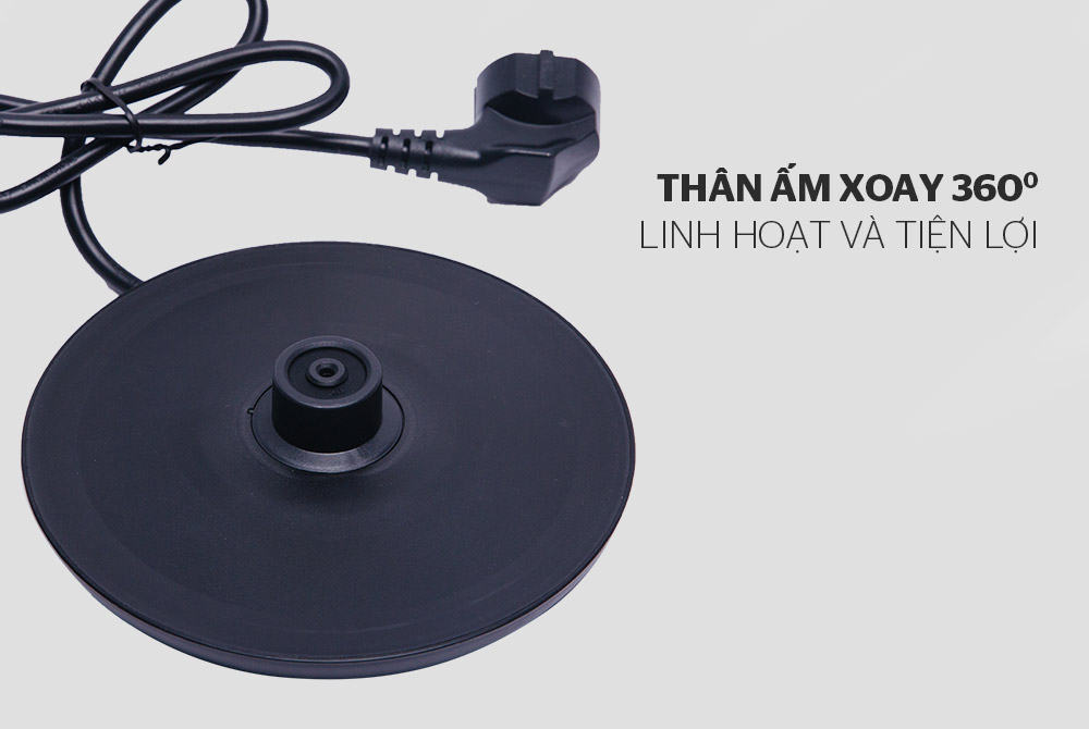 Thân ấm xoay 360 độ linh hoạt trên đế tiếp điện