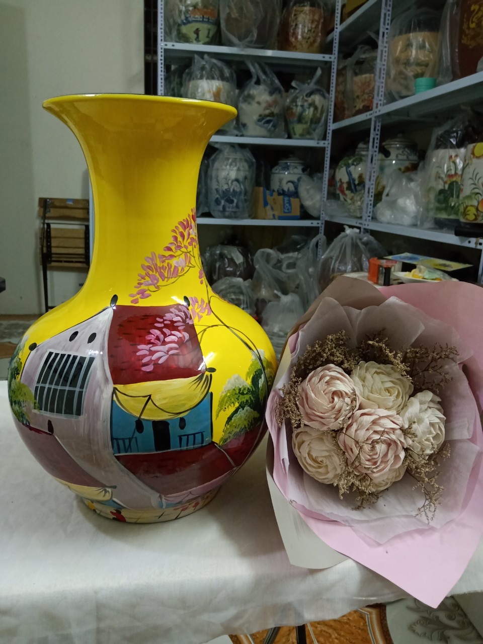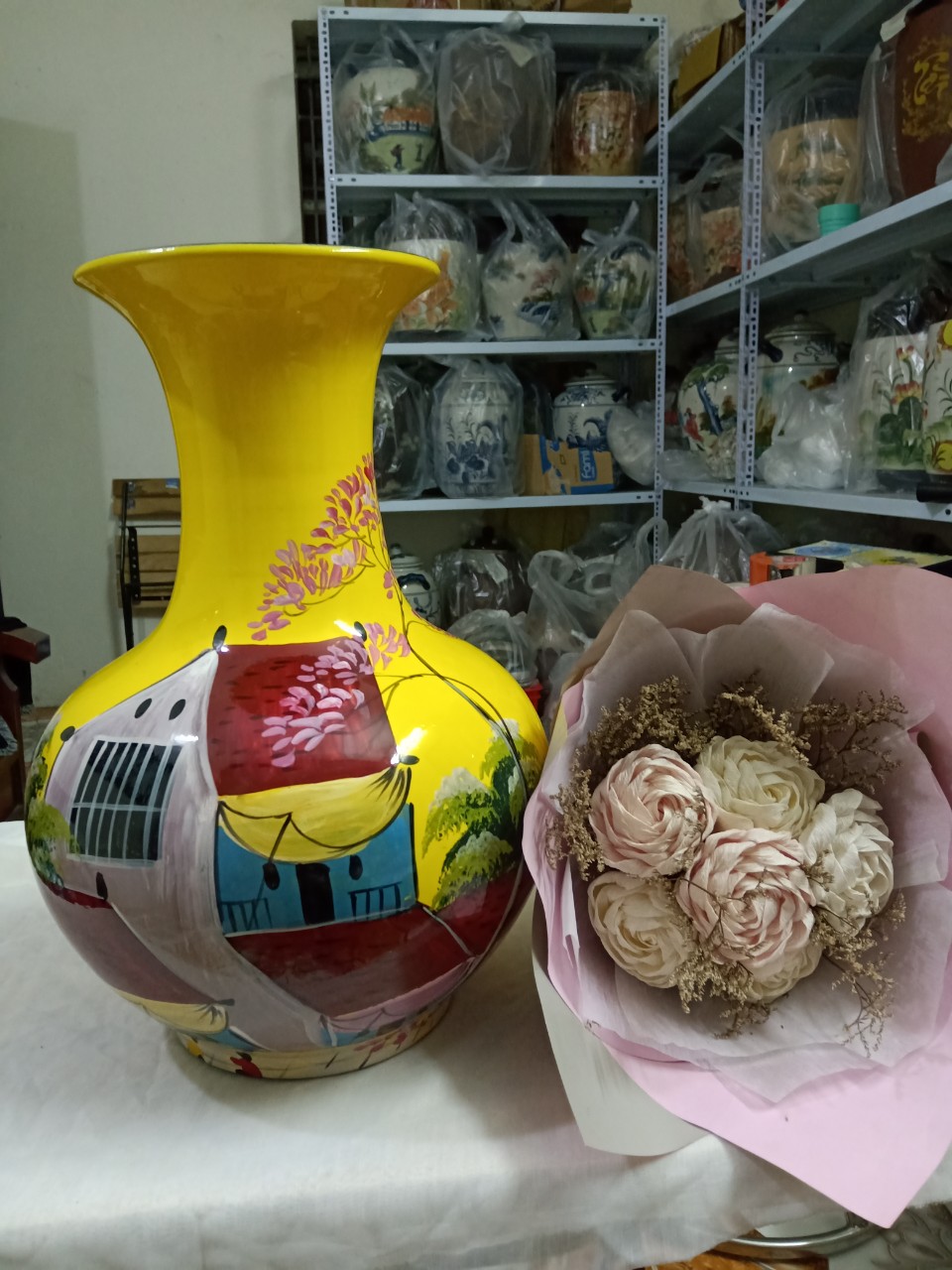 Lọ hoa trang trí của gốm Bát Tràng là một sản phẩm thủ công độc đáo, được làm từ chất liệu gốm sứ cao cấp. Với thiết kế tinh tế và đa dạng về kiểu