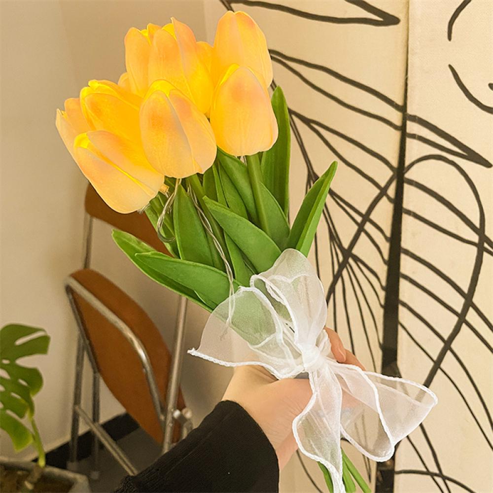 Bó 10 Cành Hoa Tulip Kèm Đèn Led Phát Sáng Hoa Cưới Hoa Lụa Giả Kèm Nơ Xinh Decor Trang Trí Nhà Cửa
