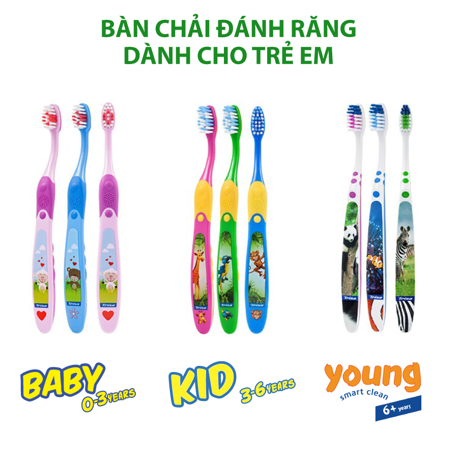 TRISA BABY - BÀN CHẢI ĐÁNH RĂNG CHO BÉ TỪ 0 - 3 TUỔI Các mẹ bỉm sữa đã bắt đầu tập cho bé nhà mình làm sạch răng chưa Điều quan trọng là chọn thật kỹ mẫu bàn chải để kích thích bé thường xuyên đánh răng hơn cũng như bảo vệ toàn diện cho bé. Trisa Việt Nam mang đến cho các mẹ một mẫu bàn chải được nhập khẩu từ Thụy Sĩ, với thiết kế theo chủ đề chú gấu dễ thương, mang đến sự thích thú cho bé khi đánh răng. Vùng lông bàn chải màu đỏ giúp dễ dàng xác định đúng lượng kem đánh răng phù hợp cho bé, lượng kem tốt nhất khoảng bằng một hạt đậu. Đầu bàn chải nhỏ gọn, đặc biệt dành riêng cho các bé tập đánh răng, giúp bé tự chăm sóc răng miệng sạch sâu hơn, không làm ảnh hưởng đến răng sữa, nướu răng.