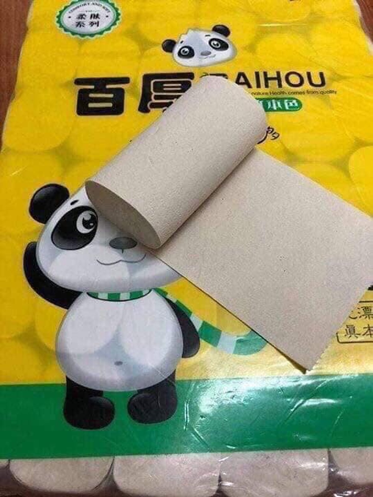 Giấy ăn gấu trúc siêu dai Loại QYSIPIAO BAIHOU Thương Hiệu AlphaVH là một sản phẩm được làm từ bột trúc nguyên sinh, có màu hơi ngà ngà chứ không trắng như các loại giấy thông thường do màu trắng tự nhiên không sử dụng các chất tẩy, làm trắng. Giấy khi sử dụng sẽ có độ dai tự nhiên nên khi dùng giấy bạn sẽ thấy giấy thấm nước nhưng không hề bị rách, nát, mủn như nhiều loại giấy ăn chúng ta đang dùng. Sản phẩm rất an toàn nên bạn có thể sử dụng giấy thay cho các gói khăn ướt trên thị trường được cho là không đảm bảo an toàn vệ sinh. THÔNG TIN SẢN PHẨM: Giấy dai, thấm nước không bị nát; Được làm từ bột trúc không có chất tẩy trắng nên an toàn khi sử dụng; Độ dai tự nhiên, có thể dùng thay khăn giấy ướt; Đóng gói: 36 cuộn Trọng lượng 2,8kg TÍNH NĂNG NỔI BẬT. Bịch giấy trúc đa năng 4 lớp làm từ giấy cực đẹp thấm tốt siêu dai mà ko hề mủn Giấy cuộn to thích hợp làm giấy vệ sinh ; Có thể làm giấy thấm dầu ăn hay dùng lau chùi vật dụng gia đình đều ok Giấy bằng bột tre trúc tự nhiên không ngâm chất tẩy, cực dai, cực mềm và an toàn cả với trẻ nhỏ
