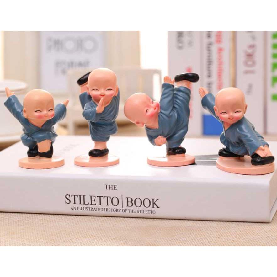 ✨Bộ 4 Chú Tiểu Luyện Võ Siêu Đáng Yêu, 4 chú tiểu tập võ, trang trí ô tô, xe hơi, 4 chú tiểu đánh võ