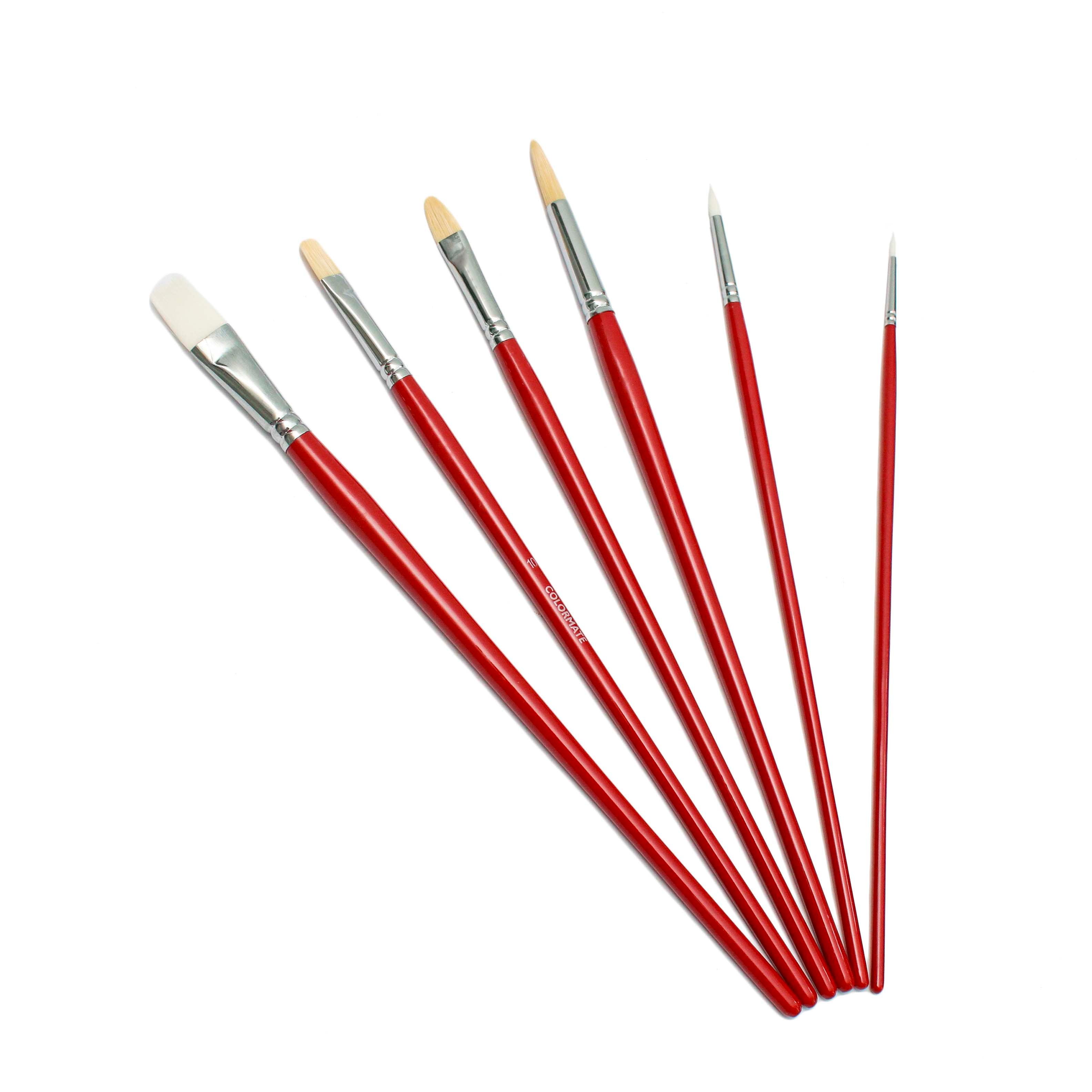 Bộ 6 Cây Cọ Vẽ Màu Sơn Dầu đáp ứng nhu cầu vẽ chuyên dụng của người dùng với chất lượng đảm bảo để tạo nên đường nét vẽ tinh tế, nhẹ nhàng hay sắc sảo. Thân cọ được làm bằng gỗ nhẹ, không khiến người cầm cọ cảm thấy nặng tay và dễ dàng điều khiển được thao tác cọ theo ý mình. Bên cạnh đó, đầu cọ vẽ được làm bằng lông nhân tạo, rất mềm mại và dễ dàng linh hoạt trong nét vẽ. Bộ sản phẩm bao gồm : 6 cây cọ với 6 đầu cọ với kích thước từ nhỏ tới lớn