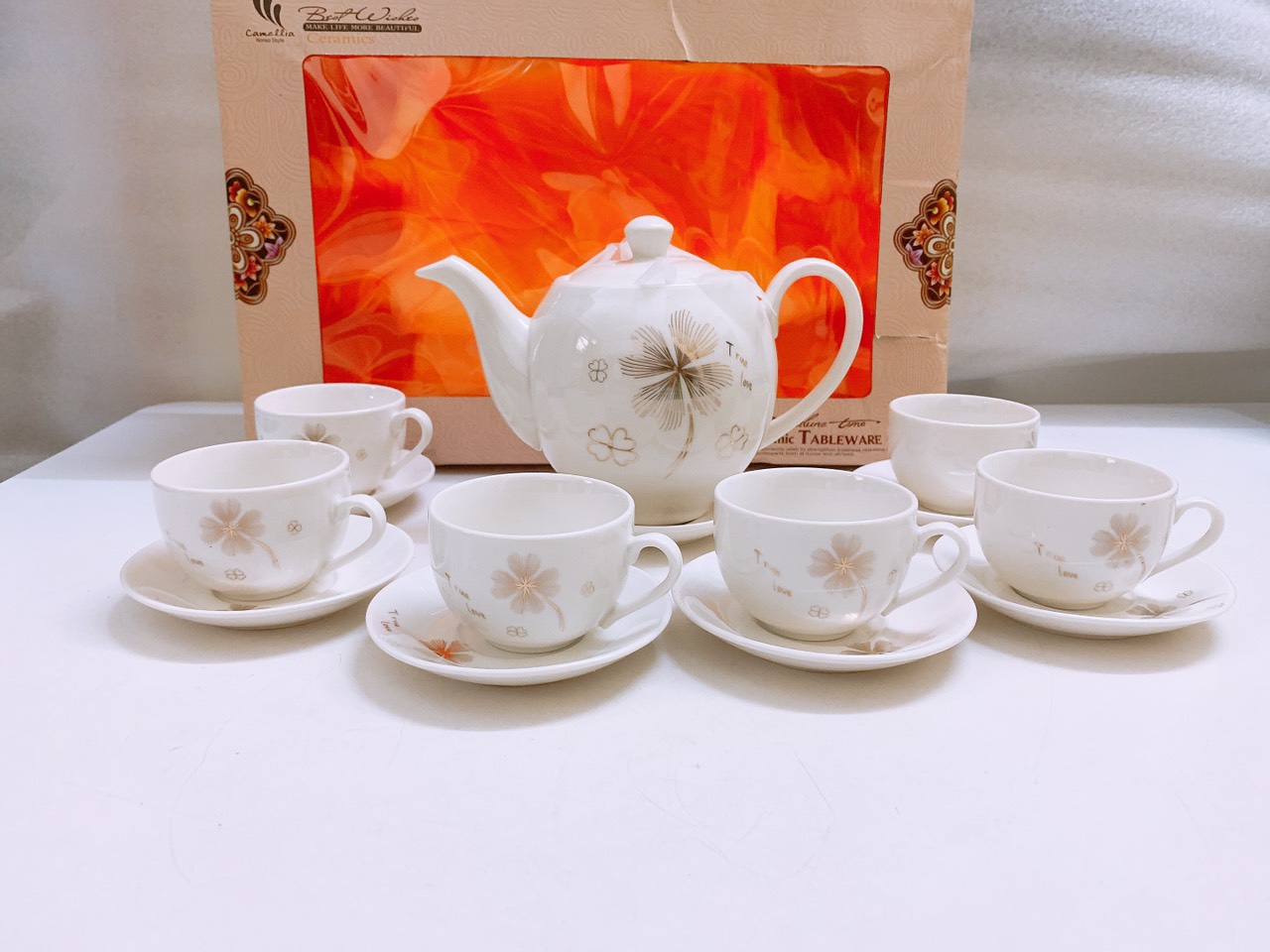 Một bộ sản phẩm bao gồm: 01 ấm, 01 đĩa ấm, 06 chén và 06 đĩa chén. Bộ sản phẩm được làm từ chất liệu gốm cao cấp, bảo đảm an toàn vệ sinh