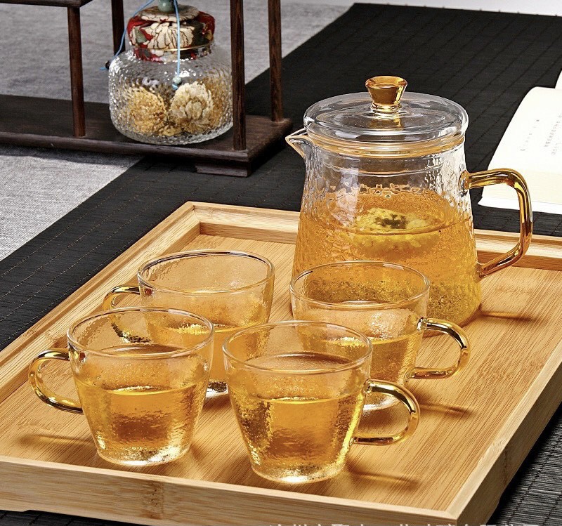 ✨BỘ ẤM CHÉN PHA TRÀ THỦY TINH KÈM KHAY GỖ VÂN SẦN ( KHAY GIAO NGẪU NHIÊN ) VD21