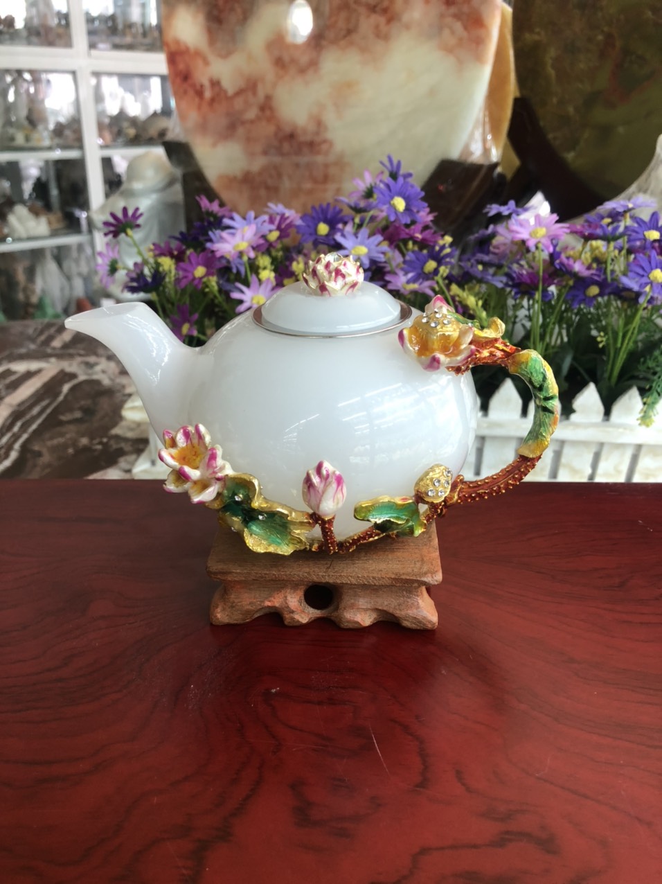 ✨Bộ ấm trà chạm hoa sen đá bạch ngọc