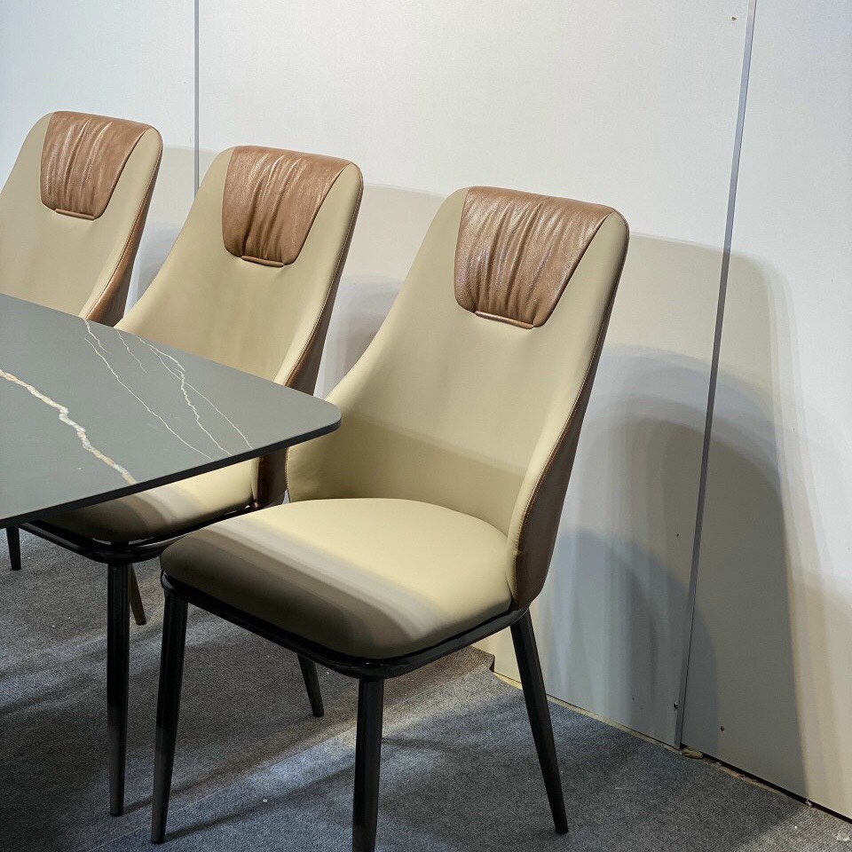 - Đi cùng với chiếc bàn ăn là những chiếc ghế hiện đại, thời trang mang đến vẻ đẹp thanh lịch cho phòng ăn của bạn. Với chất liệu da cao cấp, tạo sự thoải mái và êm dịu khi ngồi, cùng với đó là khả năng chịu lực tốt rất tiện ích và an toàn cho cả nhà.