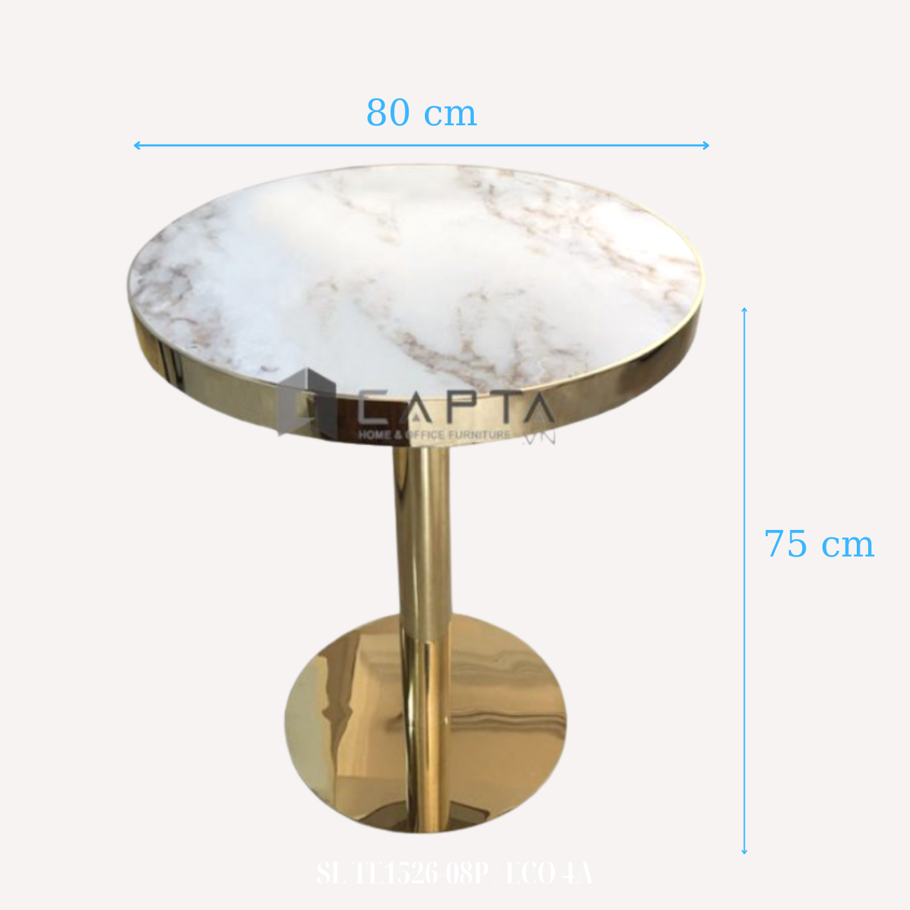 Bộ bàn ghế tiếp khách spa chân mạ màu vàng 4 ghế nệm lớn Bộ bàn tiếp khách mặt vân đá trắng 80 cm SL TE1526-08P / ECO 4A TpHCM