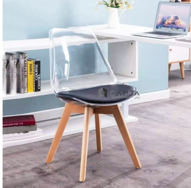 Ghế trong suốt chân gỗ DSW-PC3 có hình dáng hiện đại, phù hợp với không gian trẻ, sang trọng. Thân ghế làm bằng nhựa trong suốt cao cấp, giúp ghế cứng cáp và chịu lực. Nệm ngồi PVC giúp ghế êm ái, hạn chế bám bụi và dễ dàng vệ sinh