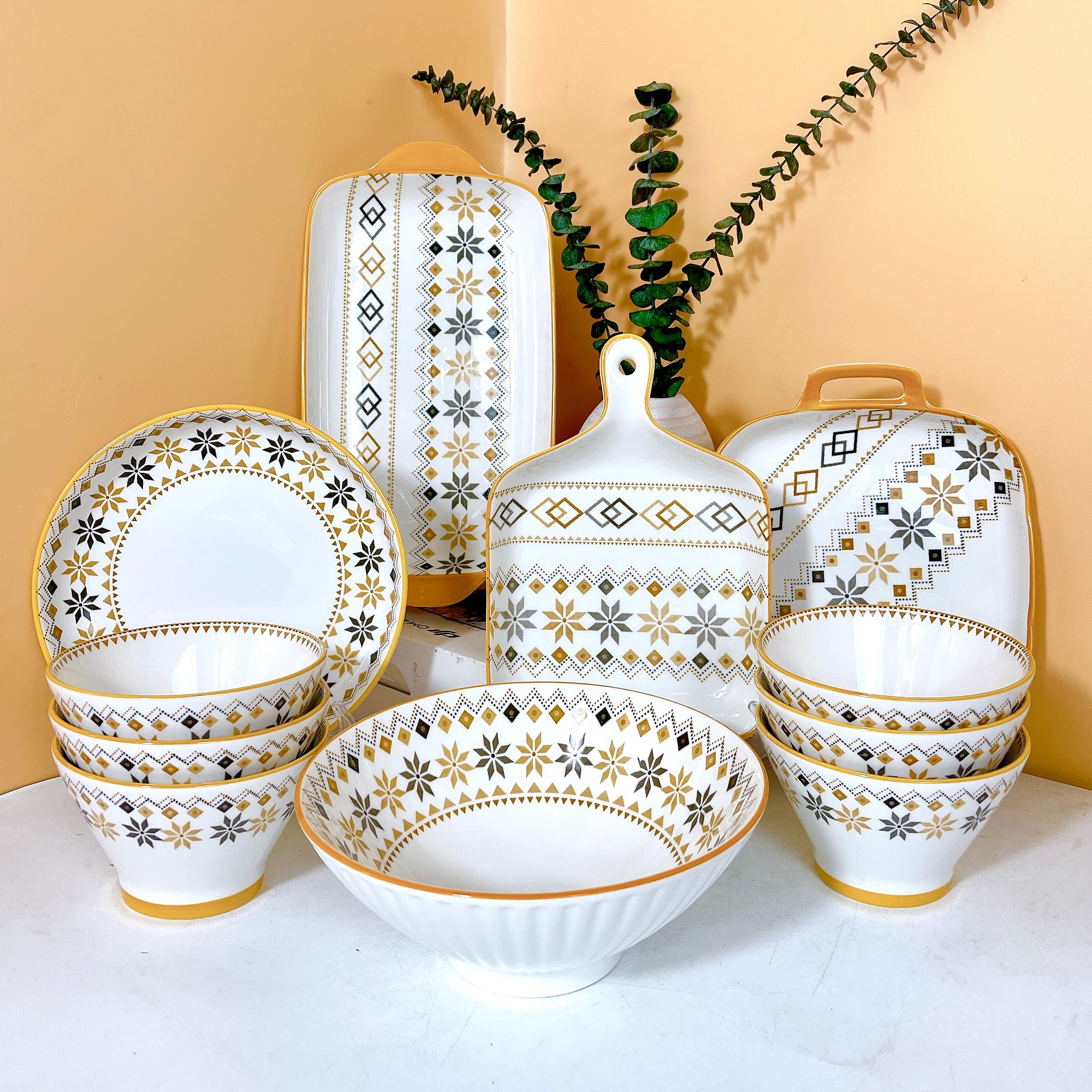 Phong cách: English Vintage Kích thước: 8 người 36 món Miêu tả: Bộ gồm: 8 bát cơm, 2 bát tô 6 inch, 6 đĩa sâu, 2 đĩa nông, 1 bát tô 8 inch, 1 muỗng