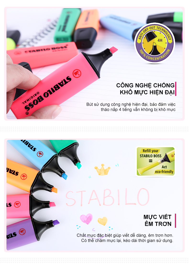 Bút dạ quang STABILO BOSS Original Pastel sản xuất tại Đức