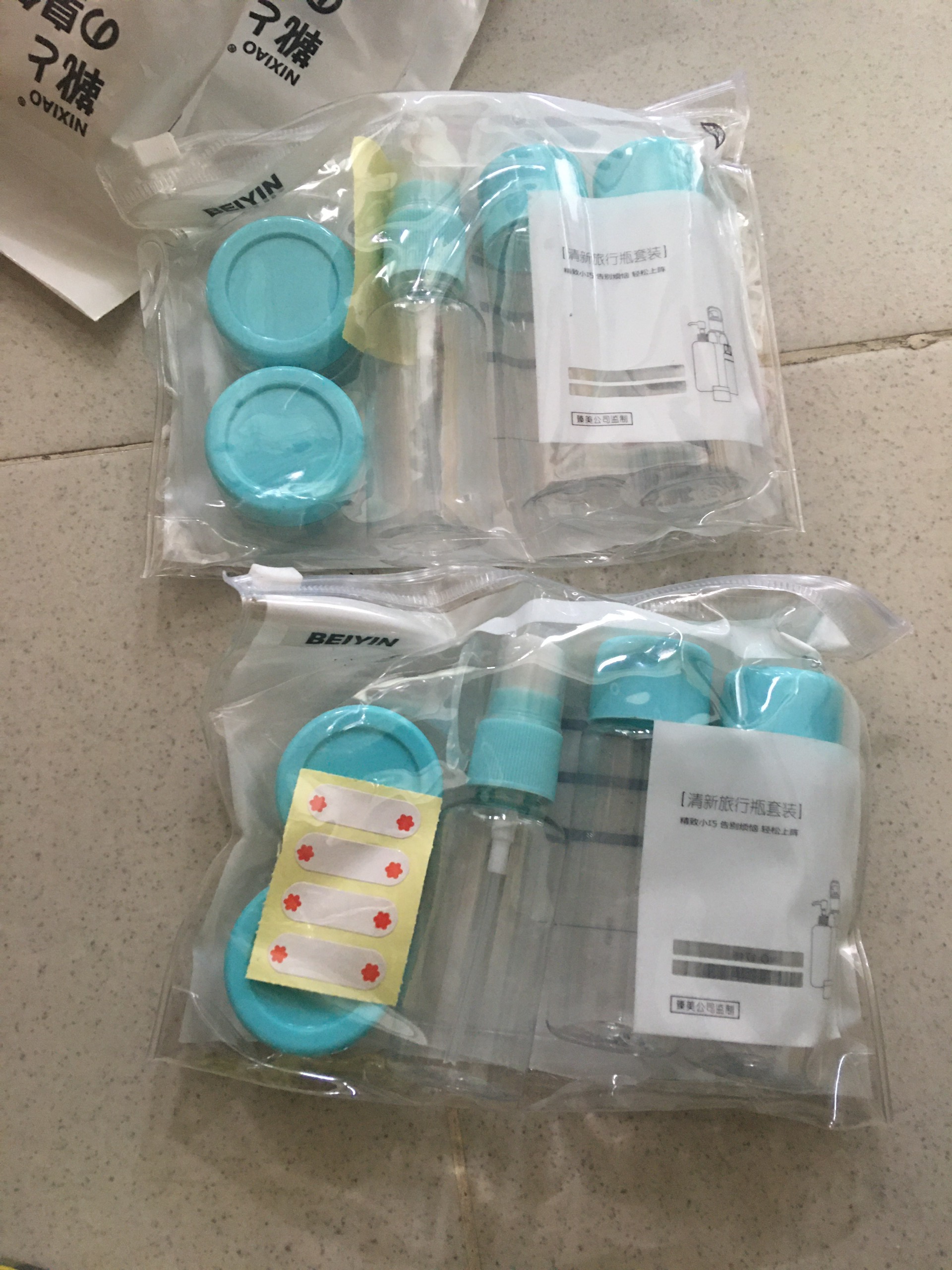-5 chai lọ với nhiều kích thước khác nhau đủ để đựng mỹ phẩm du lịch ,dã ngoại ,công tác cả tuần