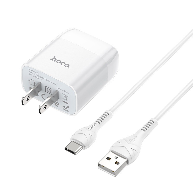 Bộ Dây Và Cóc Sạc Nhanh Hoco C72 2.1A Cổng Type-C - Hàng Chính Hãng