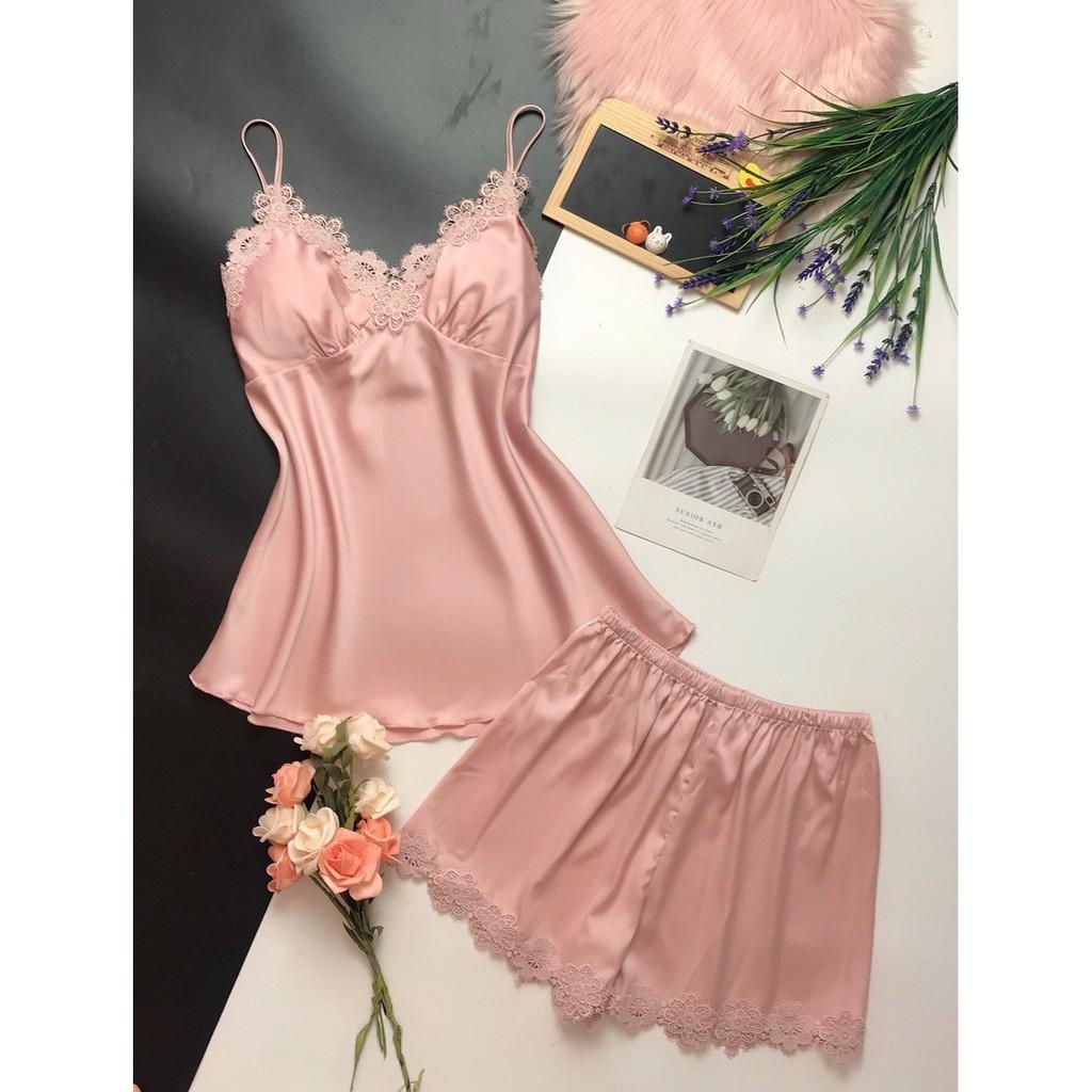 👉 MUA Ở ĐÂY ✨ Set Đồ Bộ Ngủ Mặc Nhà Lụa Hai Dây Quần Cộc TPMS73 💕