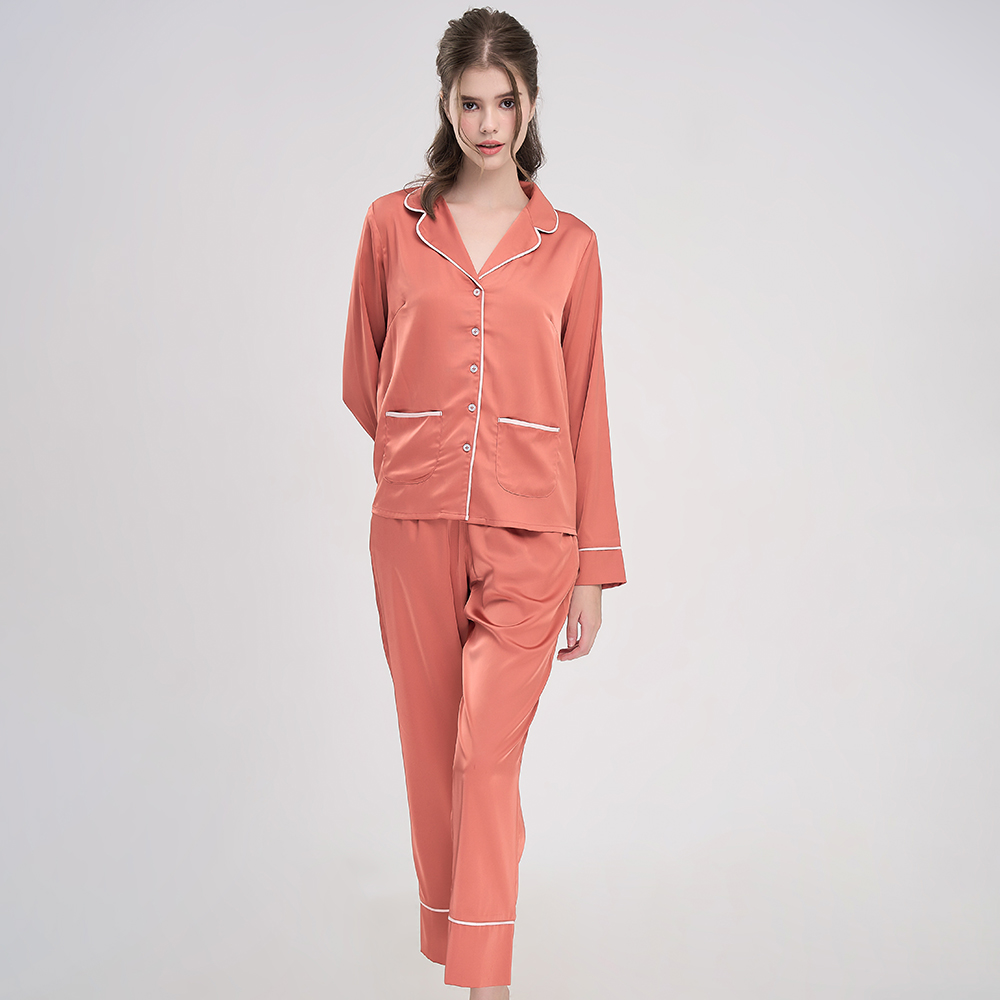 Bộ dài satin pijama, tay dài,2 túi áo, le mí nổi bật