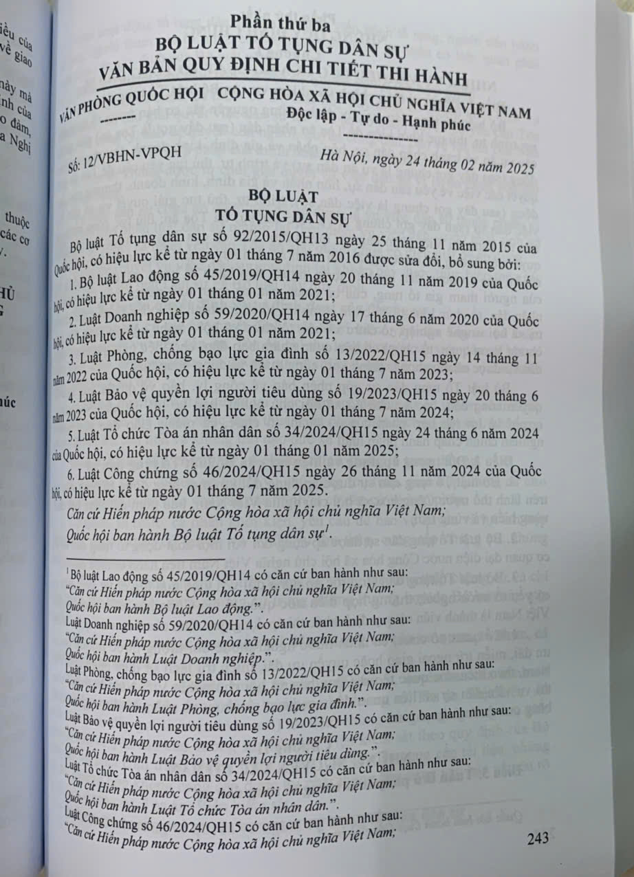 Ghi chú: Sách chưa in bản hợp nhất của Bộ luật tố tụng dân sự 2025 hiệu lực 7/7/2025