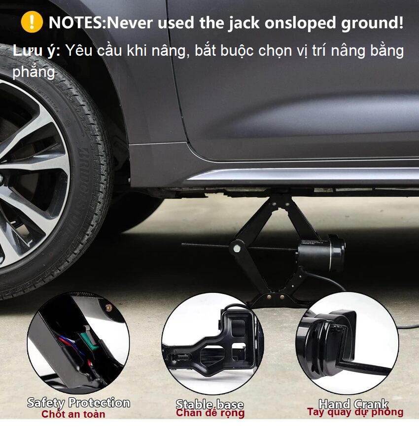 Bộ dụng cụ thay lốp xe ô tô đa năng bao gồm: - Kích (con đội an toàn) với hành trình từ 15cm đến 45cm,thời gian nâng 2-3 phút,tải trọng tối đa 5000kg. - Dụng