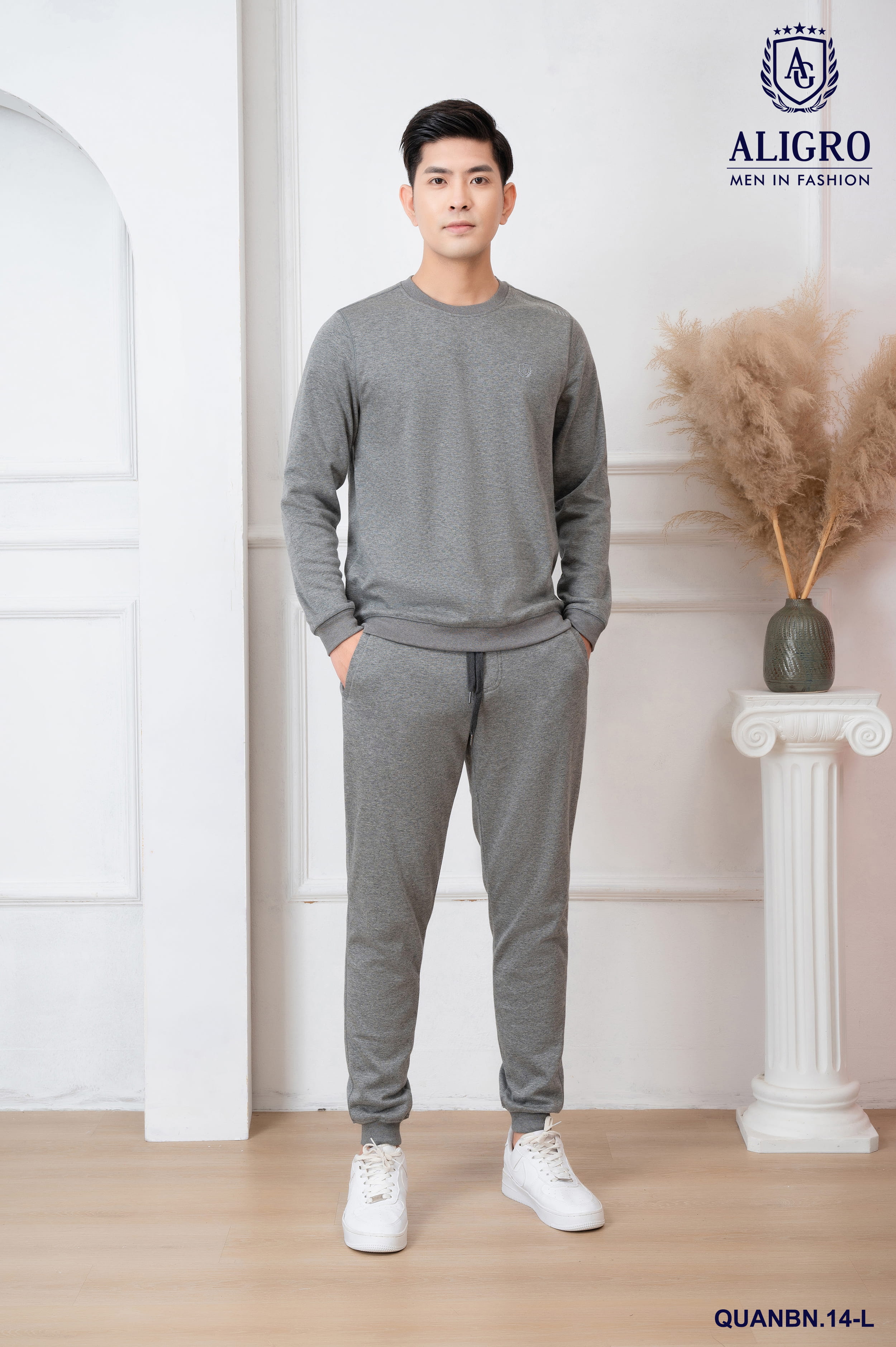 ✨Bộ nỉ cổ tròn màu ghi nhạt ALIGRO BN.14