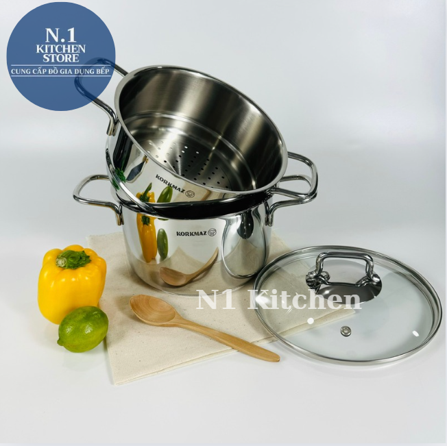 ✨Bộ nồi xửng hấp inox 18/10 Korkmaz Perla Thổ Nhĩ Kỳ, Bảo hành 4 năm - Hàng Chính Hãng