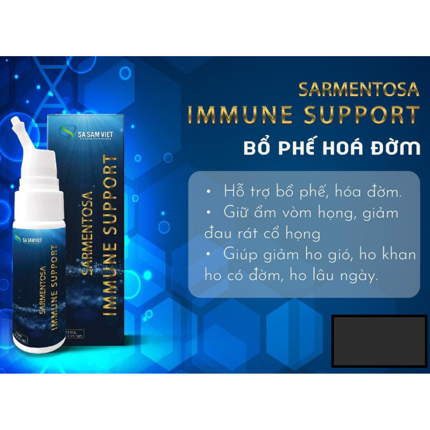 - Không dùng cho người mẫn cảm với bất kỳ thành phần nào của sản phẩm. Bảo quản: Nơi khô ráo, thoáng mát; nhiệt độ dưới 30 độ C, tránh ẩm và ánh nắng mặt trời, tránh xa tầm tay trẻ em. SỰ ĐỘC ĐÁO KHÁC BIỆT CỦA BỔ PHẾ HÓA ĐỜM IMMUNE SUPPORT SARMENTOSA CHÍNH LÀ: Phát huy tác dụng của 3 hợp chất Saponin, Polyphenol, Muối vô cơ cực kỳ cao trong Sa Sâm Việt để thanh lọc cơ thể, làm cho tế bào khoẻ mạnh phát triển. Nâng cao thể trạng sau đó tận dụng chất dẫn hết sức tuyệt vời của muối vô cơ tạo thành các điện tích trên các màng tế bào, cho phép truyền các xung thần kinh đưa dược liệu vào cơ thể một cách tối ưu nhất, phát huy hết tác dụng mang lại hiệu quả cao nhất trong hỗ trợ thanh lọc cơ thể, giúp hỗ trợ bổ phế, hóa đờm; giúp giảm ho gió, ho khan, ho có đờm, ho lâu ngày. SA SÂM VIỆT - SÂM CỦA NGƯỜI VIỆT Là một đề tài nghiên cứu khoa học duy nhất chuyên sâu duy nhất tại Việt Nam và trên thế giới hiện nay. Hàm lượng Saponin cao hơn rất nhiều lần các loài sâm hiện nay: 10.8% – 12.54% Chất chống Oxy hoá Polyphenol 290.9 mg/g cao hơn rất nhiều 100 loài dược liệu và rau củ quả được thế giới công nhận có hàm lượng chất chống Oxy hoá cao nhất thế giới. Muối vô cơ 135.9 mg/g , đây là một loại muối hoàn toàn thiên nhiên được chuyển hoá từ thực vật mà trên thế giới hiện nay cực kỳ hiếm. SAPONIN Saponin sức khỏe cho tim mạch. Nhờ khả năng giảm cholesterol và chất béo tích tụ bám mảng trên thành mạch máu, chống xơ vữa động mạch và các rối loạn khác, Saponin ức chế sự giải phóng lipase, một loại enzyme phá vỡ chất béo trong chế độ ăn uống. Nhờ đó, cơ thể hấp thụ ít chất béo từ thức ăn, Saponin cũng có thể ức chế sự hình thành mô mỡ và ức chế sự thèm ăn, điều này giúp tăng cường hơn nữa hành động có lợi của chúng đối với trọng lượng cơ thể kiểm soát cân nặng ở mức vừa phải. Do đặc tính hạ đường huyết của chúng, chúng giữ cho lượng đường trong máu của cơ thể trong giới hạn bình thường và ngăn ngừa đột biến insulin. Saponin giúp tăng cường hệ thống miễn dịch của cơ thể, kháng khuẩn, bảo vệ cơ thể chống lại nấm, vi khuẩn và virus. Cải thiện chức năng miễn dịch bằng cách kích thích sản xuất tế bào T (Tế bào T, hoặc tế bào lympho T, là một loại tế bào lympho (một phân lớp của bạch cầu) đóng một vai trò trung tâm trong miễn dịch qua trung gian tế bào). Chống oxy hóa và làm giảm căng thẳng, giảm nguy cơ ung thư, gây chết tế bào ung thư, chống lại những tổn thương gốc tự do, có lợi cho các chức năng tinh thần, cải thiện trí nhớ cho người mắc bệnh Alzheimer. Cải thiện các triệu chứng rối loạn cương dương bằng cách giảm căng thẳng oxy hóa trong các mô và tăng cường lưu lượng máu trong cơ của bộ phận sinh dục. POLYPHENOL Polyphenols tồn tại chủ yếu trong tự nhiên, có thể tổng hợp hoặc bán tổng hợp nhưng tính chất sẽ không bằng được với polyphenol tự nhiên. Ở thực vật có một cơ chế giúp bảo vệ thực vật chống lại sự phá hoại của tia cực tím và xâm nhập của mầm bệnh, đó là sản sinh ra các polyphenol thực hiện chức năng như người bảo vệ” và tái tạo cấu trúc tế bào. Sa Sâm Việt được trồng trên cát biển, trong suốt quá trình sinh trưởng và tồn tại, để chống lại ánh nắng và tia cực tím trên vùng biển khắc nghiệt. Sa Sâm Việt đã tự sản sinh ra Polyphenol để tự kháng với môi trường, đặc biệt là tia cực tím UV. Vì vậy trong Sa Sâm Việt hàm lượng Polyphenol lên đến 290.9mg/g, cao hơn rất nhiều lần 100 loài dược liệu rau củ quả được thế giới công nhận có hàm lượng chất chống Oxy hoá cao nhất thế giới. Lợi ích của polyphenol với sức khỏe ! Polyphenol có tác dụng khử các gốc tự do, chống oxi hóa, ngăn chặn quá trình lão hoá cơ thể con người. hạn chế sự phát triển khối u, ung thư ở đường ruột. ngăn chặn và kiểm soát chứng béo phì. Kháng viêm và chống ung thư, có khả năng ức chế sự tăng trưởng của tế bào ung thư gan, ngăn ngừa bệnh viêm gan mãn tí giúp động mạch co giãn để duy trì lưu lượng máu và giữ cho động mạch không bị xơ vữa. chống lại các tổn thương của tế bào. Đặc biệt polyphenol còn có chức năng quang trọng thực hiện chức năng thải độc, bảo vệ tế bào. Polyphenol xuất hiện nhiều ở rau củ quả và các loại hạt, sở dĩ ăn nhiều rau xanh và trái cây giúp chúng ta tươi trẻ hơn là nhờ vi chất này. Các hợp chất polyphenols có khả năng làm chậm lại quá trình oxy hóa nhờ vào sự kết hợp với các enzyme có trong thực vật ổn định đường huyết đặc biệt là tiểu đường týp 2 hổ trợ bệnh tim mạch, bệnh thần kinh và bệnh võng mạ MUỐI VÔ CƠ Hiện nay Kali, Natri, Magie, Canxi (Muối vô cơ) tích lũy trong các tế bào thực vật. Hiện nay do canh tác nông nghiệp với sản lượng lớn đã làm cạn kiệt nguồn dinh dưỡng này nhanh chóng, vì vậy trong canh tác nông nghiệp trên t